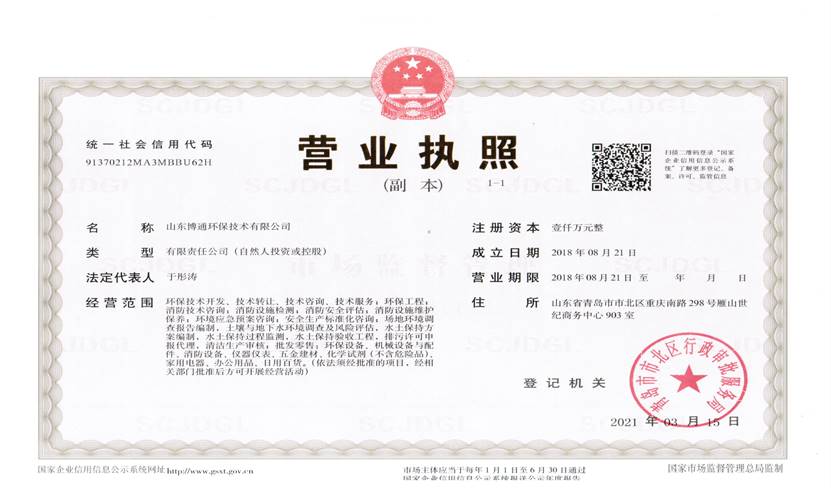 山東博通環(huán)保技術(shù)有限公司是一家專業(yè)從事環(huán)保、安全、消防的多元化技術(shù)服務(wù)公司,公司致力于打造專業(yè)的技術(shù)服務(wù)團(tuán)隊(duì),立足青島,輻射山東,服務(wù)范圍涵蓋:環(huán)保技術(shù)開發(fā)、技術(shù)轉(zhuǎn)讓、技術(shù)咨詢、技術(shù)服務(wù);環(huán)保工程;消防技術(shù)咨詢;消防設(shè)施檢測;消防安全評估;消防設(shè)施維護(hù)保養(yǎng);環(huán)境應(yīng)急預(yù)案咨詢;安全生產(chǎn)標(biāo)準(zhǔn)化咨詢;場地環(huán)境調(diào)查報(bào)告編制,土壤與地下水環(huán)境調(diào)查及風(fēng)險(xiǎn)評估,水土保持方案編制,水土保持過程監(jiān)測,水土保持驗(yàn)收工程,排污許可申報(bào)代理,清潔生產(chǎn)審核;批發(fā)零售:環(huán)保設(shè)備、機(jī)械設(shè)備與配件、消防設(shè)備、儀器儀表、五金建材、化學(xué)試劑(不含危險(xiǎn)品)。公司具有“建設(shè)手續(xù)一站式辦理,安環(huán)問題一條龍解決”的獨(dú)特優(yōu)勢,可為客戶提供高效、優(yōu)質(zhì)的安全、環(huán)保、消防管家技術(shù)服務(wù)。